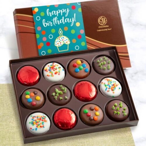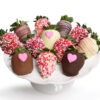 Delicious, maraschino cherries that are gently double dipped into decadent Belgian dark chocolate and decorated with ribbons of a sweet candy confection.