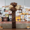 Lindt milk chocolate truffles, a chocolate soufffle pastry, dark chocolate peppermint truffles, caramel corn, Ghirardelli milk and dark chocolate peppermint bark – a blend of white and milk or dark chocolate with peppermint, Belgian truffles, peppermint candy, dark chocolate covered marshmallows and a trio of lemon, raspberry and cookie butter cakes will deliver your holiday greetings.Gift Size: 5″ x 5″ x 11″