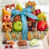 2 lbs. of Dried Apples, Dried Pears, Dried Plums, Dates, Dried Apricots, Dried Kiwi, Dried Pineapple, Dried Peaches, Dried Mango, Prunes, 3 oz. Berry Cherry Nut Trail Mix, Apple Shape Bamboo Fruit Bowl