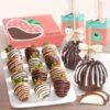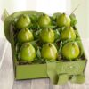 Send plenty of fruit and gourmet treats to share in this deluxe sized box of complementary flavors including varietals of orchard-fresh pears and apples with a farmstead cheese (substituted with a jar of cheese dip during hot summer months), olive oil sea salt crackers, savory cashews and sweet dark chocolate almonds. 6 lbs.