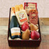 A magnificent method of celebrating is right here in this large decorative gift box filled with California red wine, cheese, fresh fruit and gourmet delights!