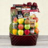 Simply the freshest fruit anywhere – all 29 pieces of it, including a pineapple – artfully arranged in a two-handled oval woven basket!