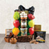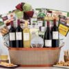 Five wines from Steeplechase Vineyards and an abundance of gourmet food overflow from this impressive gift basket.